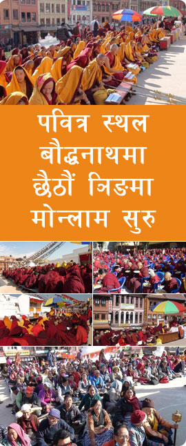 महाकरmणिक भगवान् शाक्यमनि बुद्धको जन्मभुमि नेपालमा सम्पूर्ण बौद्ध शासन तथा विशेषगरी ञिङमा परम्पराको उत्तरोत्तर प्रगति एवम् महापुरुषहरुको दिघयुको कामना गर्दछांै । नेपाल लगाएत विश्वमा दिगो शान्ति र यस पुनित कार्यका दाताहरुको सस्वास्थ्य, दिघयुं एवम् पुण्यलाभ तथा मनोकाक्षां पुरा होस भन्दै र यस वर्ष महाविनाशकारी भुकम्पमा परी दिवांगत हुनभएका चित्तको चीर शान्तिको कामना गर्दै विश्व सम्पदा सूचीमा सूचिकृत तीर्थस्थल बौद्धनाथ च्यरुङ खस्योरमा नेपाल बौद्ध ञिङमा संघको आयोजनमा सातौं ञिङमा मोन्लम (प्राणिधान पुजा) निम्न समय, मिती र स्थानमा गरिने भएको हुँदा यस पावन अवसरमा यहाँको ... Read More
